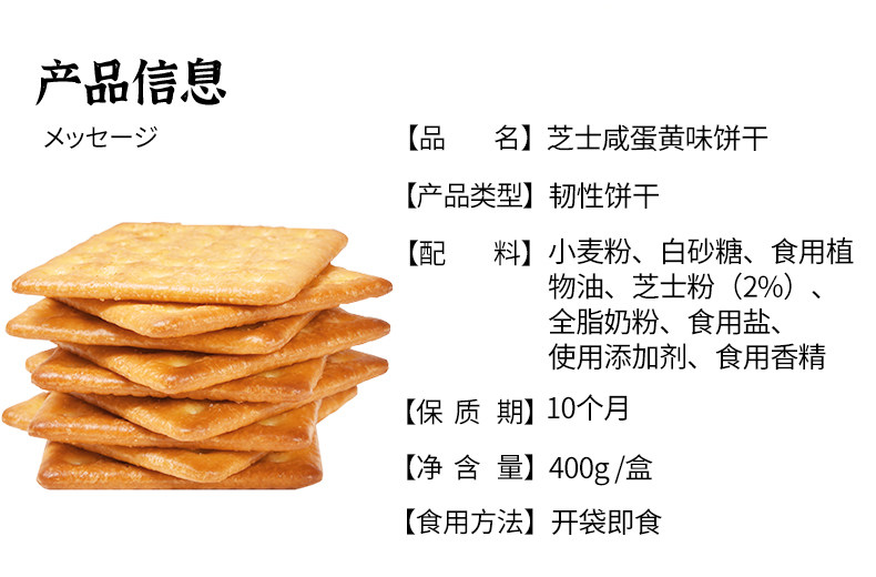 美食 芝士咸味饼干小零食整箱400g 5年 ago ohMyGod 浓浓的芝士味,酥脆咸香的饼干碰撞,入口坚持好吃爆,每块都干脆不粘牙,体验卡兹卡兹的美味~早餐新搭档!独立包装,随时随地享受美味! Continue Reading Previous 网红香脆小米锅巴204g12包Next 【5罐组合装】芝麻夹心海苔儿童孕妇食用 More Stories 美食 【植小妹】益生菌水果酵素粉5条 4年 ago ohMyGod 美食 双花俄罗斯红肠食130g*4 4年 ago ohMyGod 美食 鲜榨山楂果汁解腻开胃0脂350ml*6瓶 4年 ago ohMyGod 发表评论 取消回复您的电子邮箱地址不会被公开。 必填项已用*标注评论 显示名称 * 电子邮箱地址 * 网站地址 在此浏览器中保存我的显示名称、邮箱地址和网站地址,以便下次评论时使用。