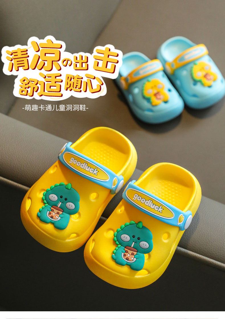 卡通小恐龙,舒适Q弹宝宝洞洞鞋。一鞋两穿...